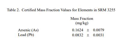 水分測(cè)定:SRM 3255 的水分含量在 NIST 通過(guò) (1) 在 7 天內(nèi)冷凍干燥至恒重進(jìn)行測(cè)定; (2) 用高氯酸鎂在干燥器中室溫干燥28 d; (3) 在 80 ℃的強(qiáng)制通風(fēng)烘箱中干燥 2 h。對(duì)使用所有三種技術(shù)獲得的未加權(quán)結(jié)果進(jìn)行平均,以確定 (0.9687 ± 0.0055) 克干質(zhì)量/克原樣質(zhì)量的轉(zhuǎn)換因子,用于將數(shù)據(jù)從原樣轉(zhuǎn)換為干質(zhì)量;此值上顯示的不確定性是擴(kuò)展的不確定性 (k = 2),代表 95% 的置信水平。從水分測(cè)量中獲得的轉(zhuǎn)換因子 (0.28 %) 的不確定度部分包含在認(rèn)證值和參考值的不確定度中,以干質(zhì)量為基礎(chǔ)報(bào)告,在本證書中提供。